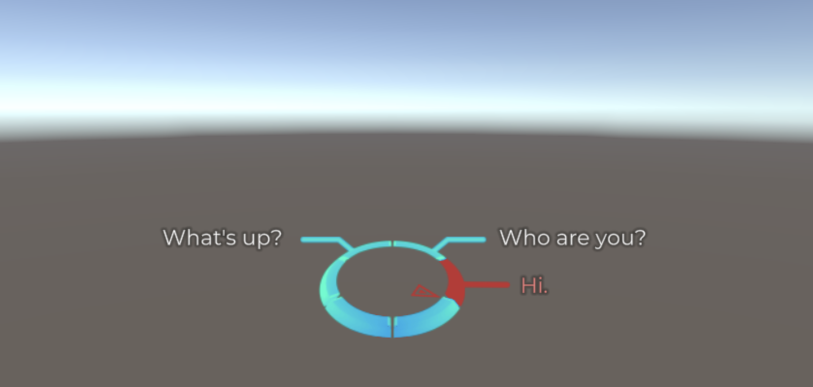 If you save your scene and run it, your Six-Segment Dialogue Wheel should now be working!