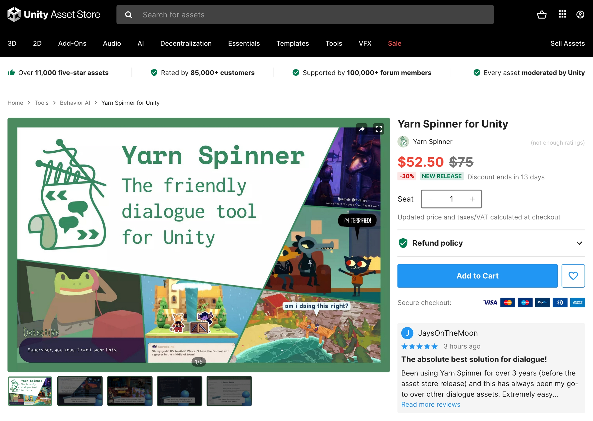 First, visit the Unity Asset Store page for Yarn Spinner for Unity, and add it to your cart, and complete your purchase while logged into the same Unity account you use to activate Unity.