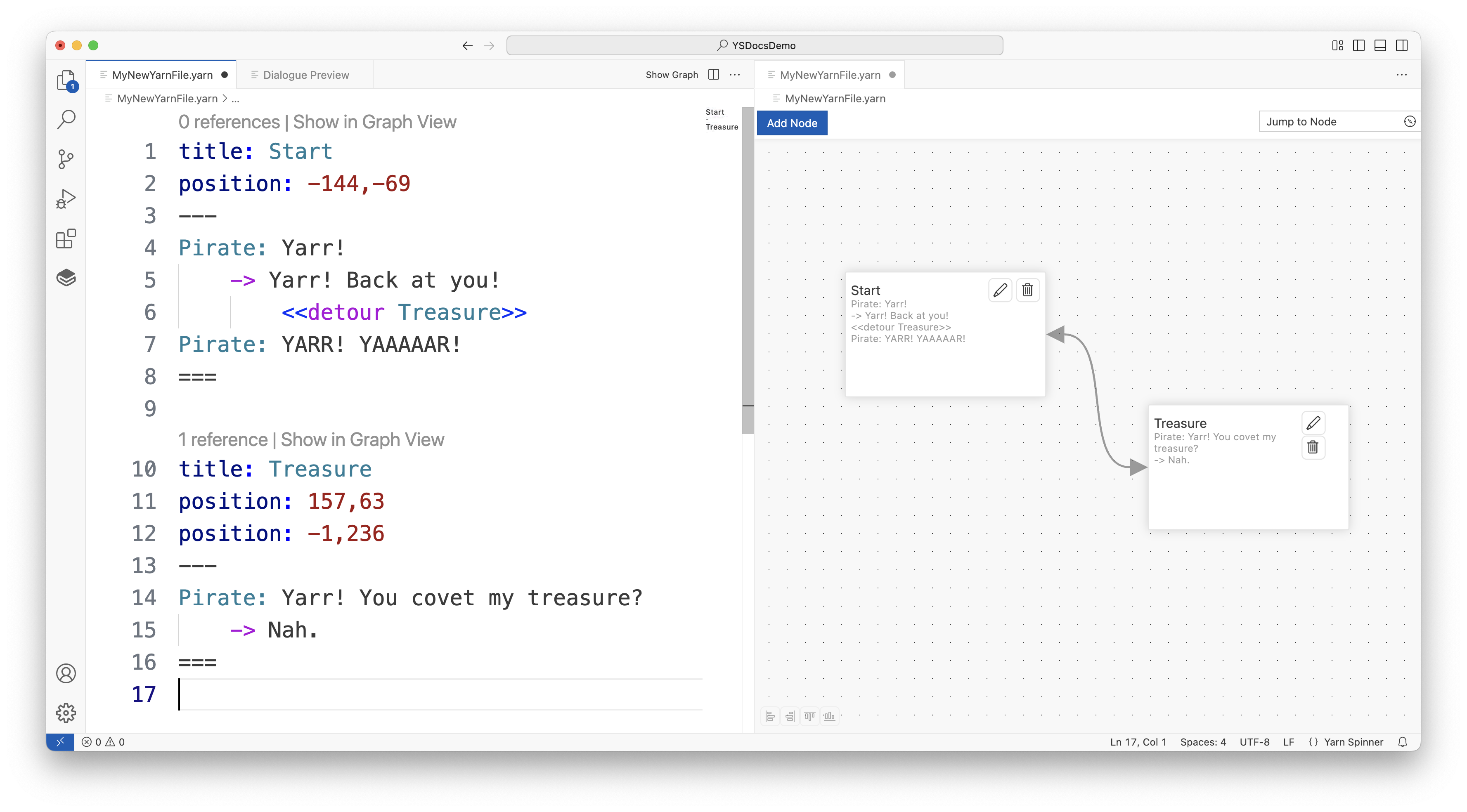 <<detour>> command being visualised in the Graph View.Write some Detour Commands