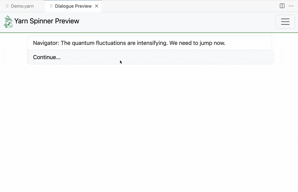 {% code title="Demo.yarn" overflow="wrap" lineNumbers="true" %}
