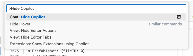 Don't be too alarmed by the AI-powered nonsense Microsoft will try and sell you. You can disable most of the AI "features" via the Command Palette by pressing Shift + Command + P (Mac) or Ctrl + Shift + P (Windows/Linux), or choosing the View menu -> Command Palette..., and typing Chat: Hide Copilot and hitting Return/Enter: