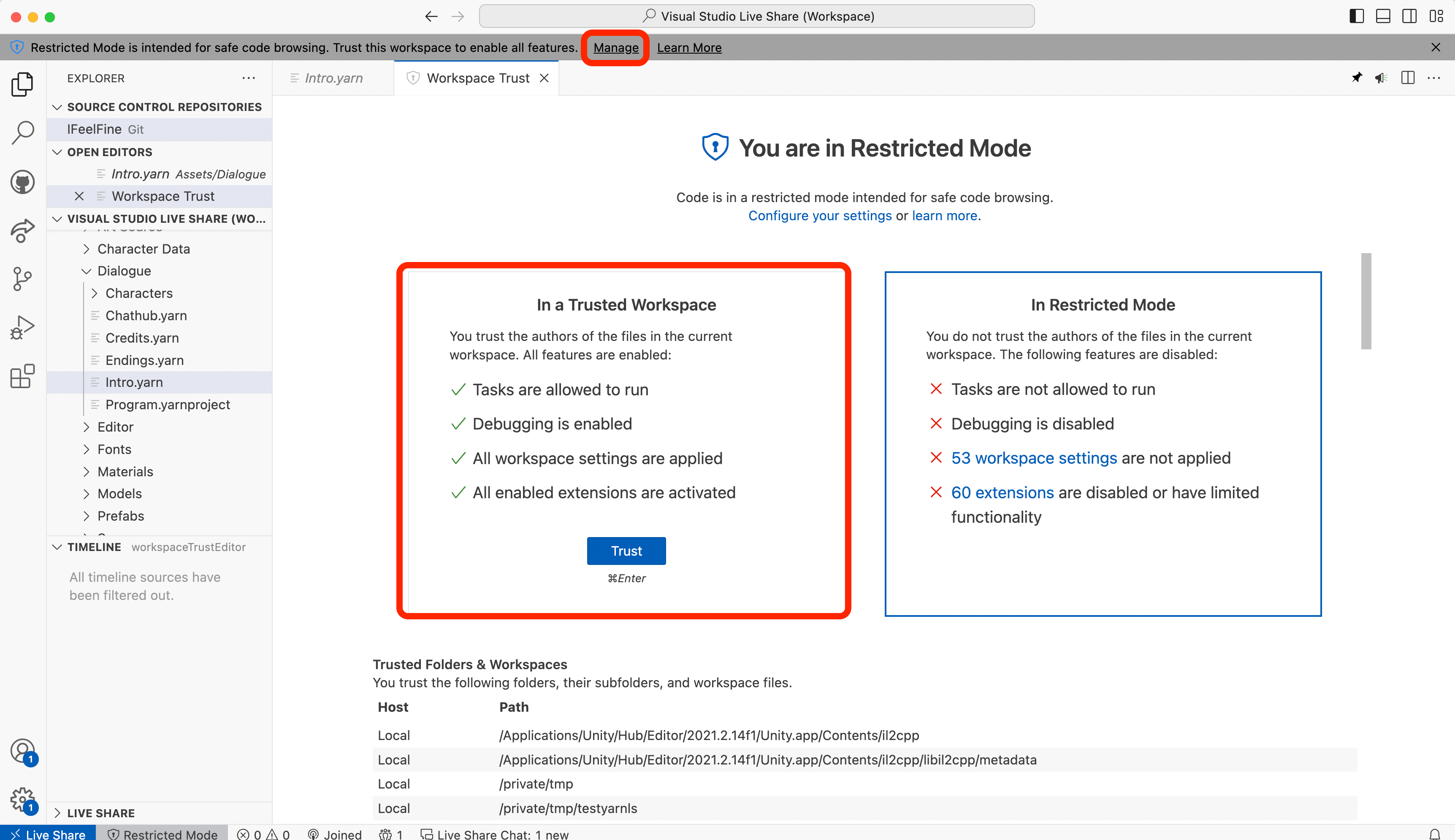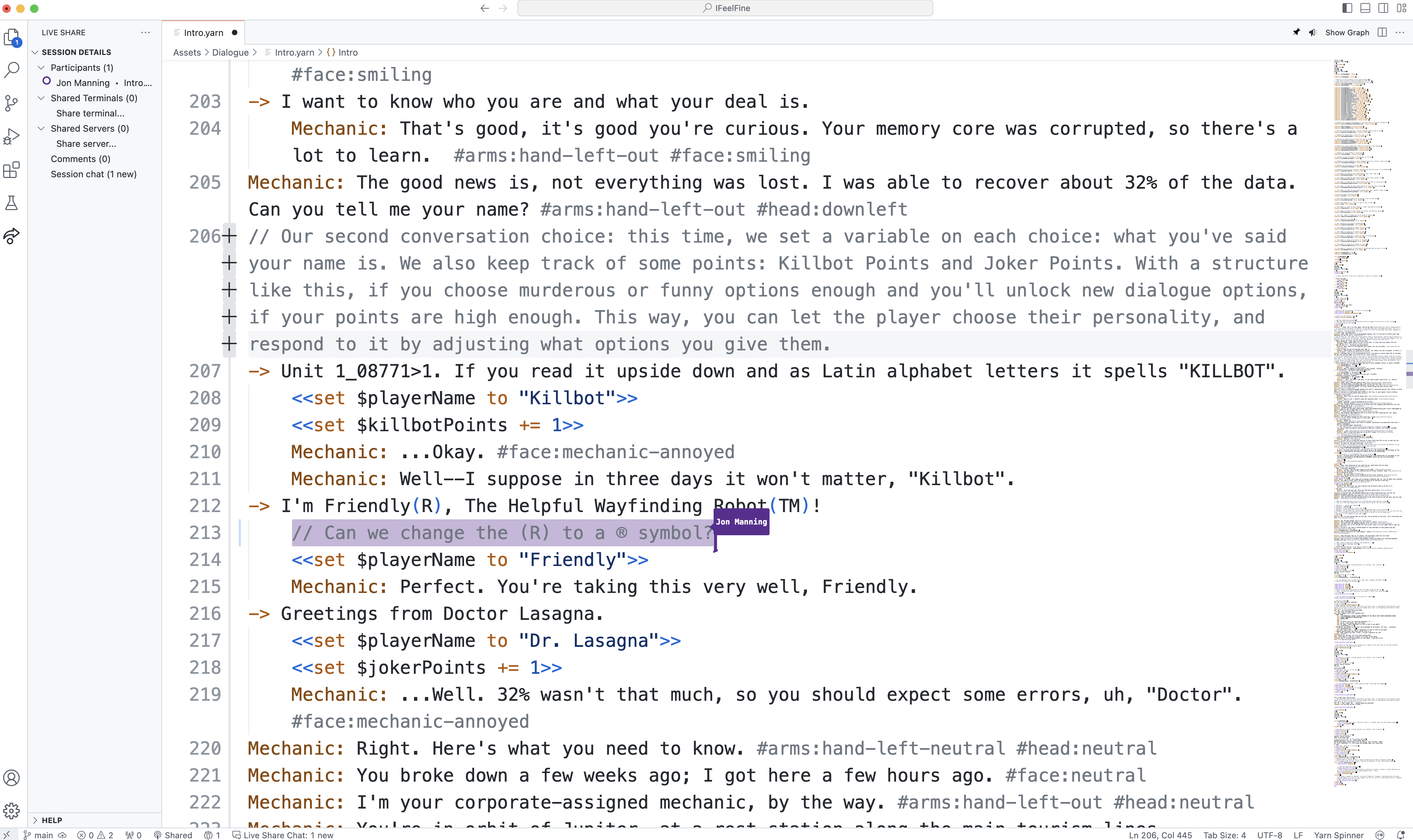Learn how to use the Live Share Extension with Yarn Spinner for Visual Studio Code.