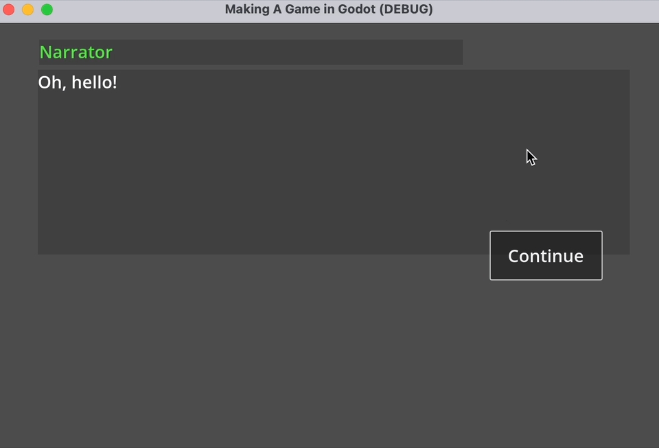 , and run the game. At this point, you can play your project, and step through the dialogue in the default Yarn Spinner for Godot Line Presenter and Options Presenter: