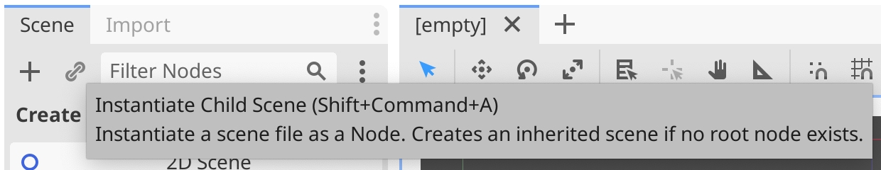 After following the instructions to install the plugin, in your Godot project, click the Instantiate Child Scene button: