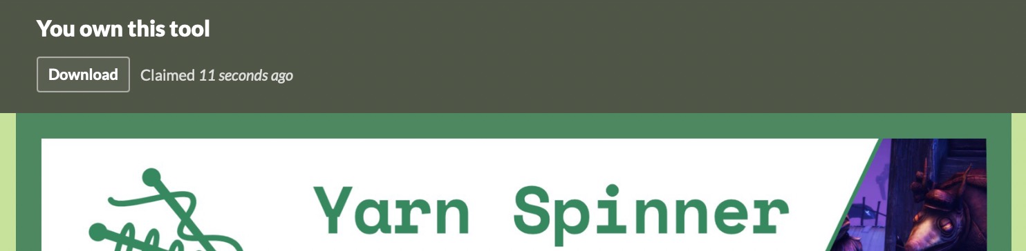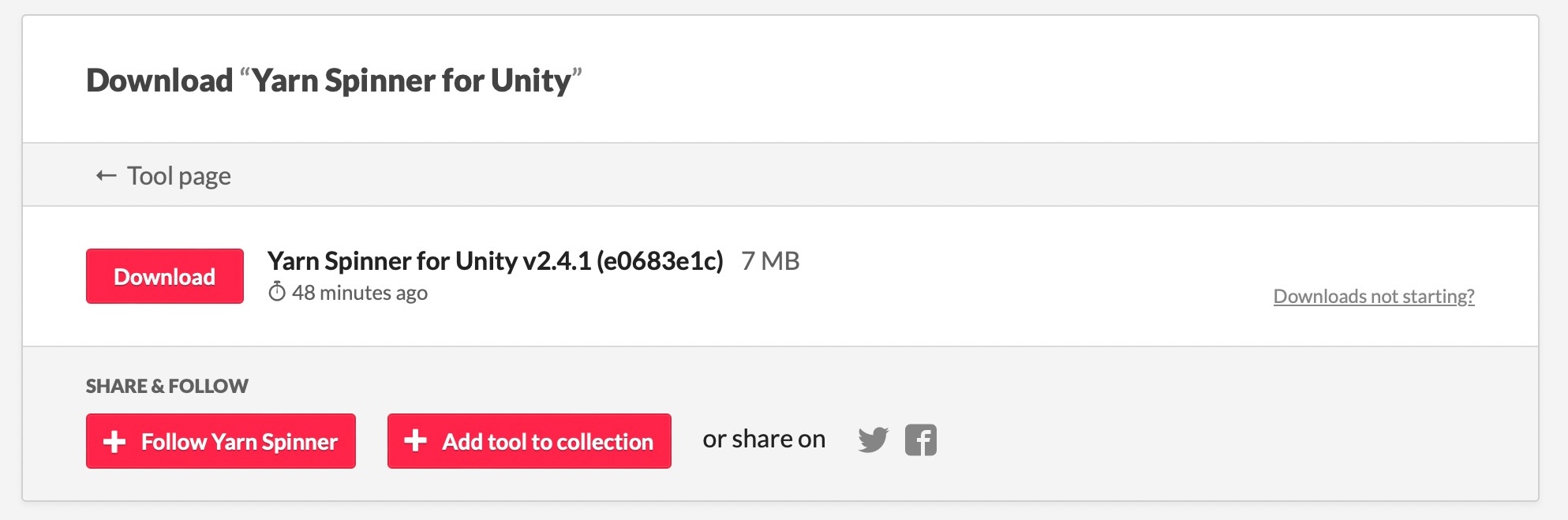 Once you've purchased Yarn Spinner, you'll find a Download button at the top of the page: